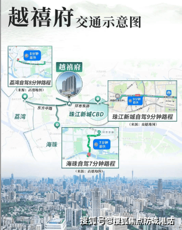 项目构建了立体化的多维交通网络,出行极为便捷。地铁方面,项目距离地铁5/6号线区庄站仅约500米,步行即可抵达,5站直达珠江新城,1站换乘6号线,2站换乘2号线,轻松链接全城核心。未来,随着地铁12号线、13号线二期的建设推进(预计2025年通车),区域的轨道交通优势将进一步增强。自驾方面,项目背靠环市路、恒福路、淘金路及内环路等城市主干道,路网发达,10分钟即可畅达天河北、体育中心等核心商圈。此外,项目东侧设有淘金北公交站,十余条公交线路通达全城。无论是依赖地铁通勤的白领,还是习惯自驾出行的家庭,越禧府都能提供高效、便捷的出行体验,让居住者从容掌控城市节奏。