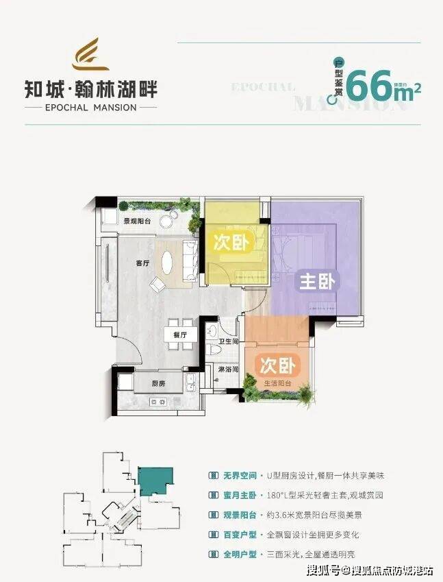 A: 项目主推建面约66-103㎡的三至四房户型。设计亮点包括超高空间实用率、LDKC客餐厨阳一体化共融巨厅、全明设计以及良好的通风采光,充分满足家庭多样化居住需求。