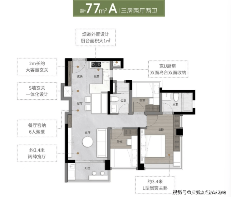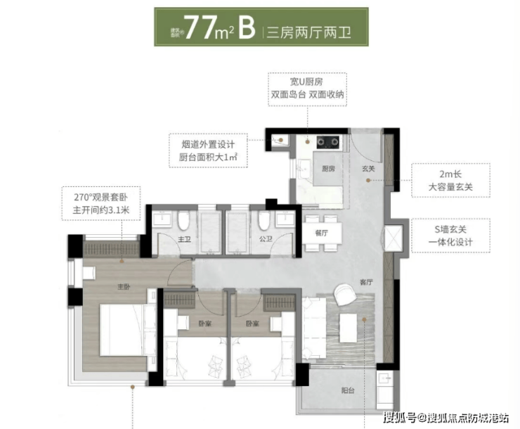 77㎡三房:总价约 293 万起,首付约 88 万起