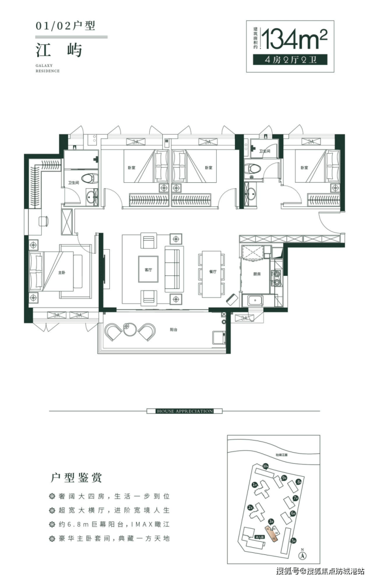 星河·江堤春晓主力户型为99-134㎡三至四房,涵盖不同家庭结构需求。小户型约99㎡,三房两厅两卫,竖厅设计方正实用,配备6.2米宽阳台,实现一线瞰江视野;U型厨房设计优化烹饪流程,主卧套间空间开阔舒适。大户型约134㎡四房两厅两卫,横厅设计奢阔,阳台6.8米,IMAX级观江体验,主卧套间提供独立衣帽间和双面采光,兼顾私密与舒适。