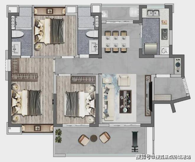 产品户型丰富多样,洋房 2 - 28 层,2 梯 4 户,平层面积约 89 - 126㎡,有三至四房不同选择,顶层复式约 144 - 199㎡,同样涵盖四至五房。小高层洋房 2 - 8 层,面积约 140 - 170㎡,为四至五房户型。以 89㎡三房两厅两卫户型为例,布局紧凑合理,动静分区明确,客厅与餐厅相连,空间开阔,保证充足采光与通风。卧室温馨舒适,主卧配备独立卫生间,保障居住私密性。各户型空间利用率较高,满足不同家庭结构的居住需求,为业主打造高品质居住空间。