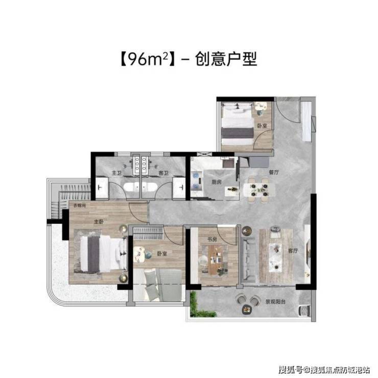 5.4 96㎡与100㎡四房:宽景阳台与南北通透