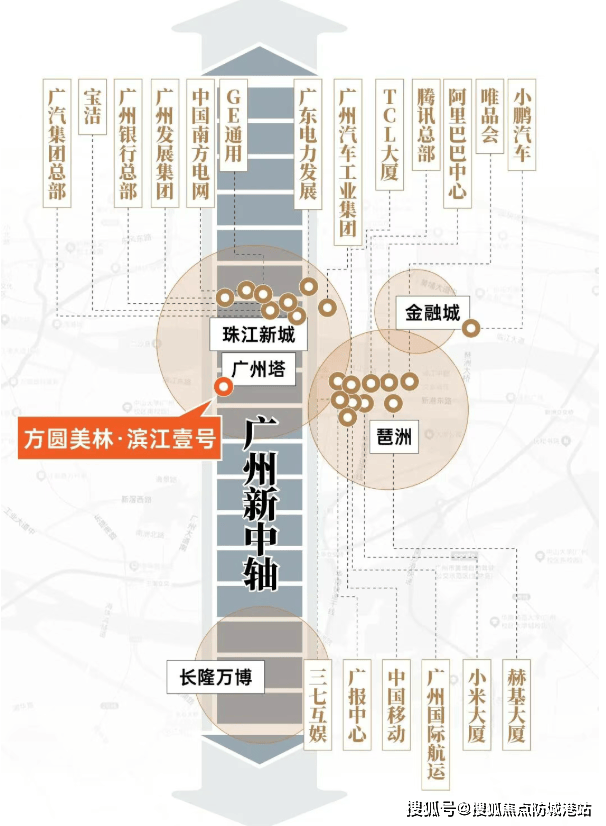 在广州这座千年商都的版图上,有一条被誉为“产业经济中轴”的黄金走廊。它北起珠江新城,南抵琶洲CBD,以全市千分之1.6的土地面积,贡献了全市12%的经济总量。这里汇聚了超过144栋甲级以上写字楼,财富500强企业中过半数的广州总部在此落子,与北京CBD、上海陆家嘴并称为中国三大国家级中央商务区。而在这条璀璨夺目的城市中轴核心,一座融合东方美学与现代奢居理念的标杆作品——方圆美林·滨江壹号,正以其不可复制的地段价值与极致产品力,重新定义广州塔畔的顶层居住标准。