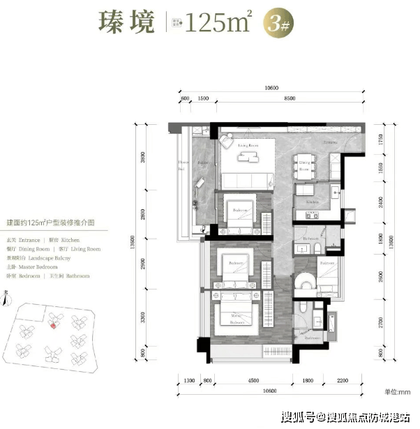 场景与解决方案: 为年轻的三口之家或与父母同住的二代家庭设计。南向双联阳台,连接客厅与次卧,实现景观与通风最大化。我们将家政阳台与公卫干区结合,解放了厨房空间,使得餐厅区域更加完整。此户型是市场上去化最快的产品之一,证明了其极高的功能与价值匹配度。