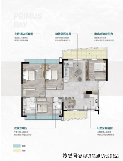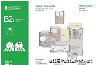 三居室:建面约86㎡,采用三房两卫设计,得房率超过90%,非常适合刚需家庭。