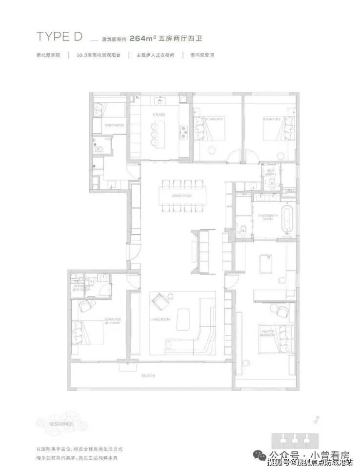 合生缦云的户型设计独具匠心,产品面积段覆盖145㎡至315㎡,从三房两卫到五房四卫不等,适应不同家庭结构的需求。每个户型都采用了LDK一体化设计理念,大幅提升了空间利用率。特别是264㎡户型,其超奢华四件套南向主卧、标准南向次主卧以及专属家政保姆空间,为居住者带来了独一无二的奢享体验。