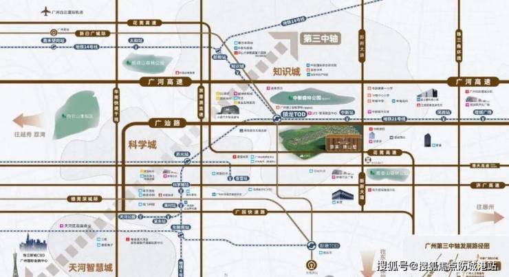 项目距地铁21号线中新站步行距离约500米,这一数据意味着居民在日常通勤中可实现较为便捷的轨道交通接驳。通过家门口的21号线,住户仅需乘坐1站即可抵达镇龙TOD枢纽,进而换乘其他线路;若前往天河核心区,全程约需4站地铁车程。镇龙TOD作为区域交通节点,进一步连接了"3地铁+1城轨+5高速”的路网体系:通过14号线可快速到达黄埔区及白云区核心地段;搭乘新白广城际铁路,2站即可到达新塘;若从知识城出发,仅需3站便可抵达白云机场。此外,穗莞深城际铁路的贯通,使得从该项目出发直达深圳机场成为可能。这种多层次的交通网络,不仅满足了日常往返市中心的需求,也为跨城商务出行或节假日长途旅行提供了实质性的便利。早高峰时段,依靠地铁通勤的可控性较高,有效规避了地面交通拥堵的不确定性,对于在天河、黄埔乃至深圳工作的置业群体而言,这里的通勤时间成本处于可接受范围内。