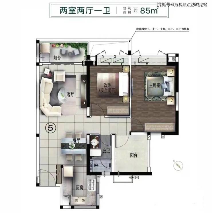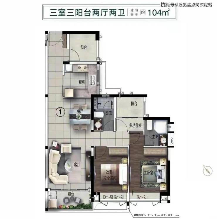 以300万元的总价为例,购房者可以选择一个85平方米的2+1三房两厅一卫的户型。
