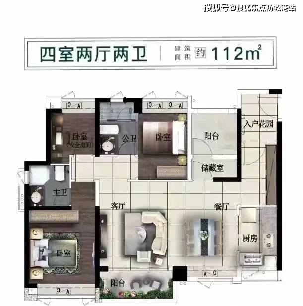 而400万元的总价则可以买到一个112平方米的四房两厅两卫的户型。