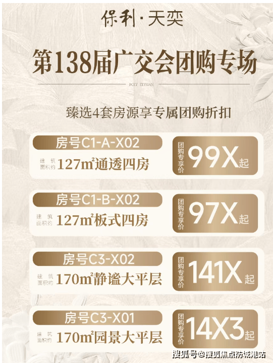 2、保利天奕售楼处电话:400-828-5661(售楼处已认证)购房咨询热线,的基础信息展现出项目的高品质定位。开发商为保利地产,项目占地6.7万m²,总建13.8万m²,总户数约950户,一期容积率2.5,二期容积率2.0,绿地率35%,在售面积为120-140-190㎡,户型为约120-190m²全板T2独栋大平层,车位比1:1.2,物业费6.8元/㎡/月。项目所在的琶洲是珠金琶黄金极核之一,2023-2024年连续两年登上福布斯中国十大CBD榜单,作为最年轻的CBD,汇集“数字经济、商务会展、总部集群”三大王牌,是掌握未来30年城市红利的发展核心区域。保利天奕位于琶洲岛南部,由保利于去年10月30日以底价摘牌相关地块,三宗地总建面13.8万㎡,总价约59.01亿元,楼面价4.25-4.3万元/㎡。琶洲南区是琶洲进阶扩容的重要平台,聚焦数字创新产业发展及高品质配套,承接CBD产业外溢和居住功能,琶洲算力中心预期2025年10月竣工,助力打造广州算谷产业新高地,区域发展潜力巨大。