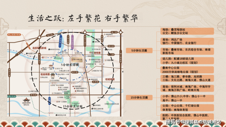 保利锦鲤堂悦占据禅桂双芯的绝佳C位,周边生活氛围浓郁,5分钟生活圈涵盖生活各方面所需。商业上,3公里内坐拥千灯湖、祖庙双城芯12大商圈,大润发等商业配套能充分满足日常购物。生态资源丰富,3公里内可揽中山公园、千灯湖公园等休闲好去处。医疗方面,中西医结合医院、佛山中医院、第二人民医院3家三甲医院环绕,为健康保驾护航。优越的区位使得业主既能享受城市繁华商业带来的便捷购物体验,又能在闲暇时漫步公园亲近自然,同时在健康保障上也无需担忧。这样的区位优势提升了居住的舒适度与便利性,无论是对于追求高品质生活的改善型购房者,还是注重生活配套的刚需购房者,都极具吸引力。