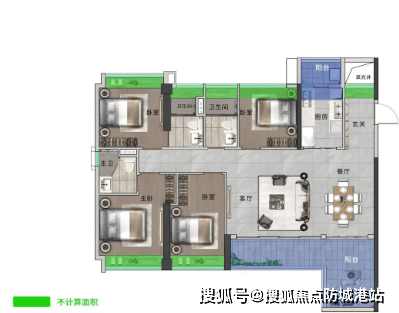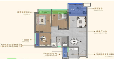 69.91平方米三房两厅一卫:紧凑实用的设计非常适合年轻家庭或首次置业者,北向朝向保证了室内良好的通风和采光。