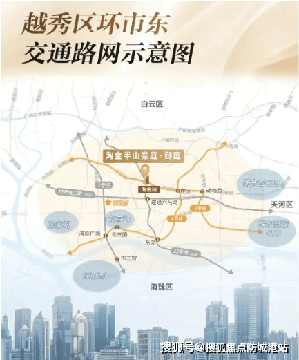 项目位于广州的核心地带——越秀区淘金板块,距离地铁5号线淘金站仅约600米,5站直达珠江新城。此外,周边还有12号线、13号线二期在建,自驾出行也极为便捷,背靠环市路、恒福路等主城动脉,轻松畅达城市各个角落。
