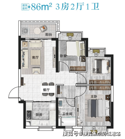 大三房、双阳台设计,生活阳台用来容纳洗衣机等生活用具,景观阳台则提升生活品质,观景实用皆拉满,居住品质感直线上升。