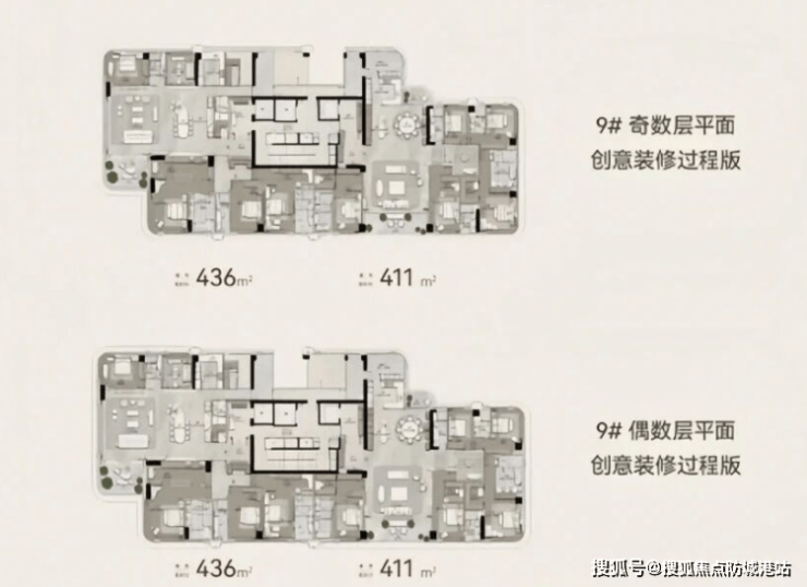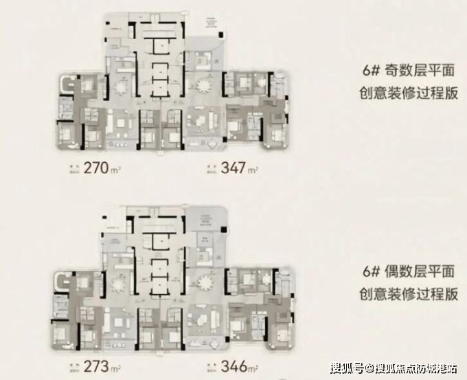 前排两栋楼分别为35层和37层,后排四栋楼从东往西分别是50层、49层、49层和50层,均采用全南向望江设计,确保每户都享有绝佳的景观视野。