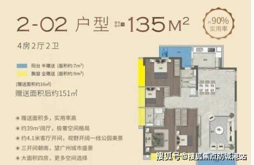建面约135㎡四房:横厅设计,双卫配置,尺度感媲美传统改善盘。