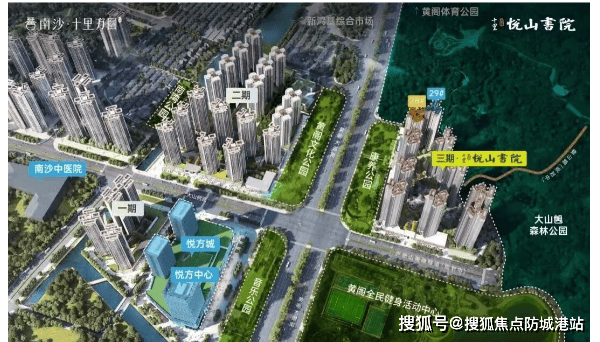 坐落于广州南沙黄阁板块核心腹地的《十里方圆三期·悦山书院》,由深耕岭南多年的方圆集团于2020年以48.6亿元竞得,楼面价约9951元/㎡,堪称低密高质代表作。项目三期占地4.17万㎡,总建面达22.75万㎡,规划10栋32-33层高层住宅,共1495户,容积率3.58,使用率却高达100%——这在当前“偷面积”受限的新规下实属罕见。更难得的是,项目背靠大山乸森林公园,东临南沙大道,西接黄阁大道南,既享城市动脉之便,又避喧嚣之扰。作为南沙“一核一带一区”战略中的重点居住片区,黄阁近年来承接大量产业与人口外溢,而悦山书院恰好卡位生态、教育与城市界面升级交汇点,区位价值正加速兑现。