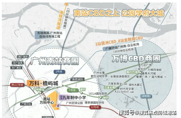 万科·檐屿城地处广州南站商务区核心启动区,距离地铁2号线、7号线广州南站约1.5公里。虽然步行稍远,但项目规划有社区巴士及公交接驳,日常通勤便利。