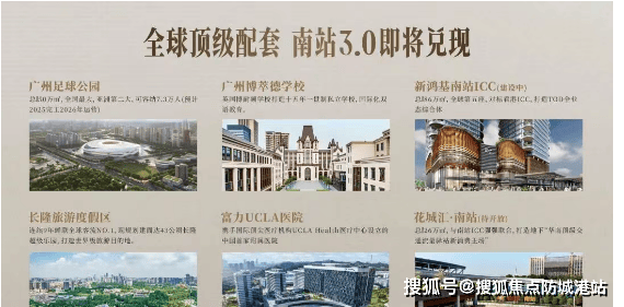 商业:周边18座地标商业密集分布,包括南站ICC、K11 Select、万象系商业、花城汇喜街等。新鸿基2万㎡商场已于2025年封顶,预计2026年投入运营,高端消费场景逐步成型。