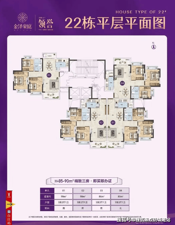 目前主要销售的是第四期的18栋、19栋、22栋和23栋,共计50个名额先到先得。产品类型涵盖85-86-90-108-114平方米的三至四房户型,具体分布如下: