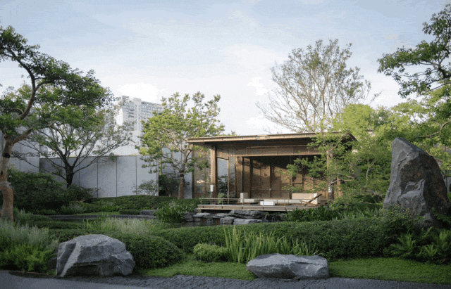 值得一提的是,保利燕语堂悦拿出了1/3的土地,打造了海珠首个新中式园林,这在寸土寸金的海珠老城区是非常难得的。园林以《梁园飞雪图》为蓝本,植入曲水飞虹、万倾涵碧、松间、观澜、林隐等景观组团,呈现出浓郁的东方意韵美感。小区大门宽约60米,两侧种植着价值不菲的罗汉松,夜幕降临后灯光亮起,归家的仪式感油然而生。平时业主在小区内散步,就能感受到东方园林的雅致与静谧,卸下一天的疲惫。