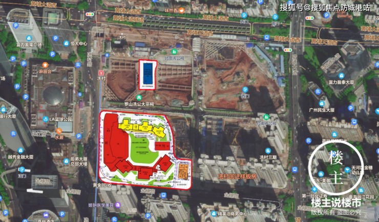 根据规划,项目将建1栋3-4层的商业中心,3栋23层-49层的办公楼,3栋47层高的住宅楼,1所幼儿园,以及和地铁合建的地下商业广场。