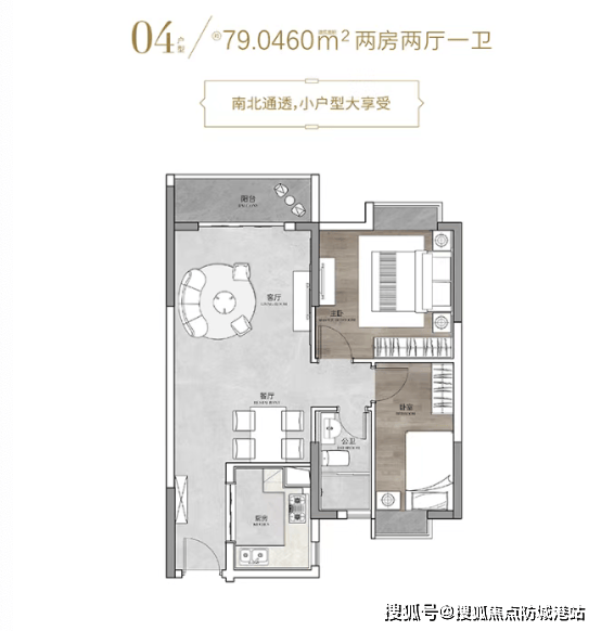 ✨79㎡两室一厅(总价约300万):刚需热门款!得房率高达82%,空间利用率超高。主卧带270°转角飘窗,采光视野一级棒,南向朝向让冬天的房间温暖又明亮。客厅和卧室空间分配均衡,不会显得局促,小家庭居住幸福感满满。