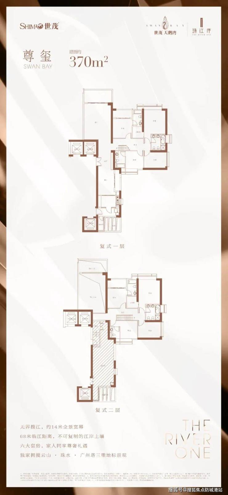 户型设计:建筑面积约370-448平方米的顶序钜制复式恒产,每一套都是传世之作。