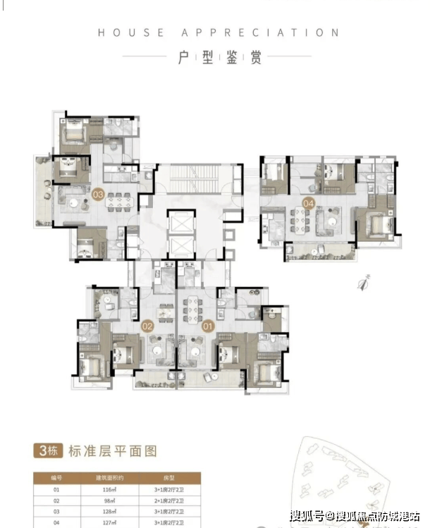 3栋:25层高,涵盖98㎡至128㎡多元选择,为主力推售楼栋;