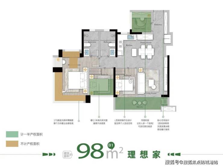 ●阳台+餐客厅+第三拓展空间,在家就能开party