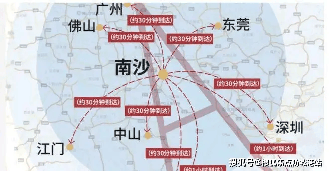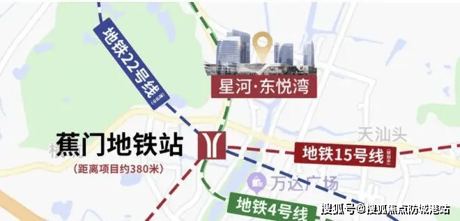 项目距离广州地铁4号线蕉门站约610米,这一数据意味着成年人在正常步速下,仅需10分钟左右即可抵达地铁站厅。在城市通勤的语境下,600米至800米通常被定义为“真地铁房”的黄金区间,既避免了紧贴轨道可能产生的噪音干扰,又确保了日常出行的便捷性。蕉门站不仅是4号线的运营站点,更是南沙区目前的交通枢纽核心。根据现有的交通规划,此处还涉及地铁15号线(规划中)与22号线(建设中)的交汇布局。这种“三地铁交汇”的构想,一旦全部落地,将把该区域从单一的线路节点升级为网状交通的核心。
