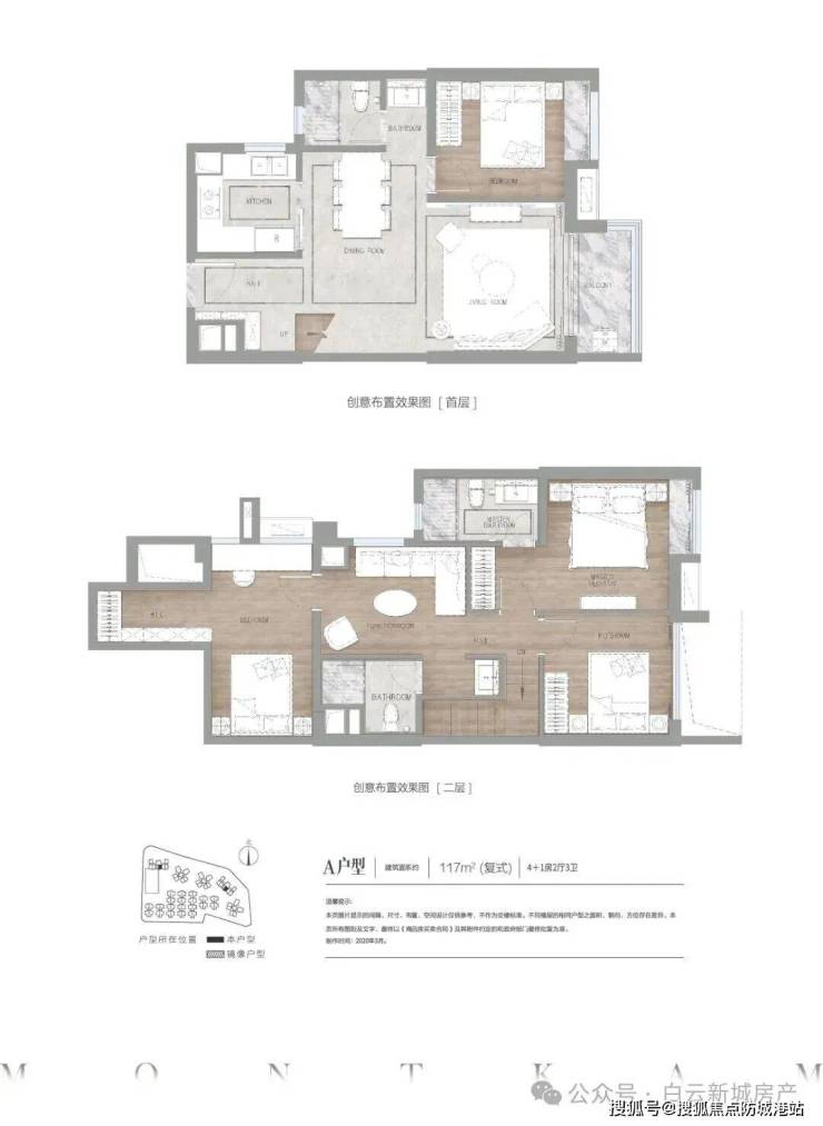 特点:三个卫生间最大化保障私密性、主卧超大套房、上下层动静分明,户型方正,全明无暗房。