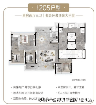 205㎡四房两厅三卫:环幕景观,双主卧套房