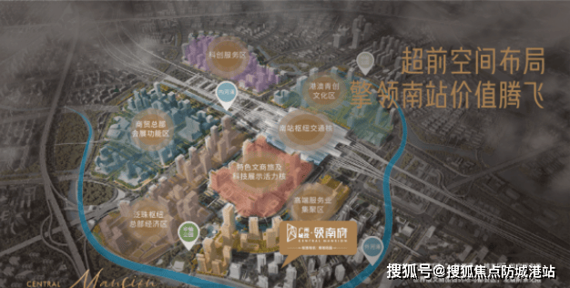 除了自身的品质优势,领南府周边的配套也在逐步落地,南站的未来已然清晰可见,而领南府作为板块核心的奢宅项目,将率先享受配套落地带来的红利。根据《南站核心区城市设计文件》,南站将打造“5+2+4”国际商圈体系,预计总投资超1600亿,将其打造成广佛高质量发展融合新极核与广州南部中心区,采用“一轴两涌+一核五区”的空间布局,打造“站城一体、业态融合的大湾区门户枢纽”,成为世界级文商旅目的地与都会区。