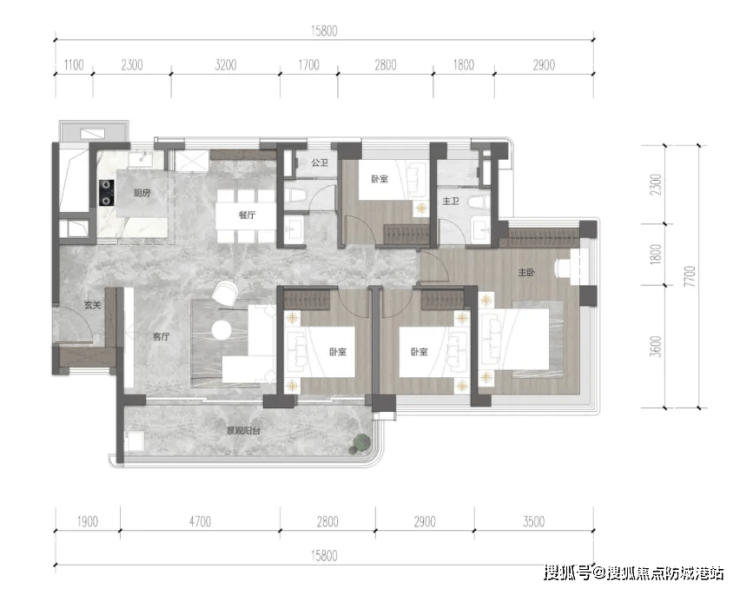 所有户型均采用高窗地比、无承重墙灵活隔断等设计,空间可变性强,满足未来家庭结构变化需求。