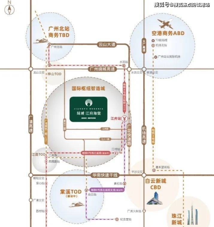 绿城·江府海棠距地铁8号线北延段及8号线北延段支线交汇江府站约800米(建设中,全线设广州白云站城际场、白云湖站、江高站、神山站四个车站预计2023年12月完工)沿线,未来一站达白云湖,城区往来自在畅达。