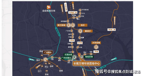 借助地铁与城际的联动,项目可轻松通达粤港澳大湾区9+2个城市中的7个,真正实现“一小时湾区生活圈”。长隆万博商务区本身就地处粤港澳大湾区地理中心位置,片区及周边交通纵横交错,地下有地铁3号线、7号线和18号线等轨道交汇,为项目的交通优势提供了坚实支撑。