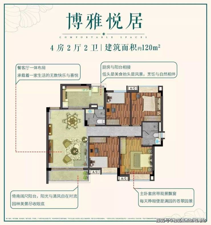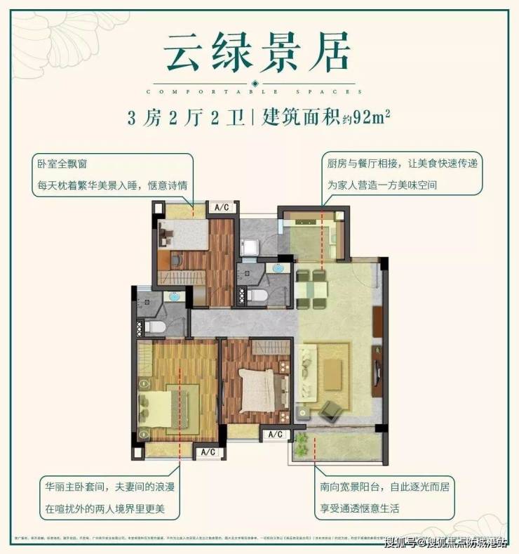 方正格局厅出阳台设计,卧室全飘窗设计,超高使用率空间相当于市面100多㎡产品,金牌户型当之无愧。