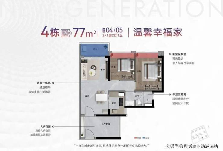 户型布局与空间利用细节是科城新世代的一大亮点。首推的2、4、5栋中,2栋采用两梯三户的设计,而4和5栋则为两梯六户,提供从67到119平方米不等的二至四房户型。尽管由于报建时间较早无法完全符合新规设计,使用率略受影响,但这些户型依然非常适合刚需和刚改客群的需求。