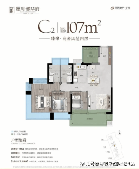 除了以上四种主力户型,项目还有107㎡、128㎡等变体户型在售,均延续了全南向、高实用率的设计特点,适配不同家庭的需求。不管你是刚需家庭、改善家庭,还是多代同堂家庭,都能在星河臻华府找到适合自己的户型。