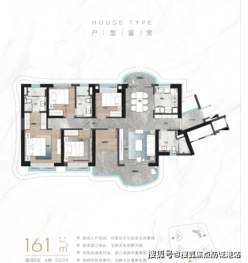 161㎡的顶奢江景同堂大五房,空间宽敞舒适,适合多代同堂居住。房间布局合理,动静分区,既能保证家庭成员的私密空间,又能提供充足的公共活动区域。主卧套房设计,带有独立的卫生间和衣帽间,彰显尊贵品质。