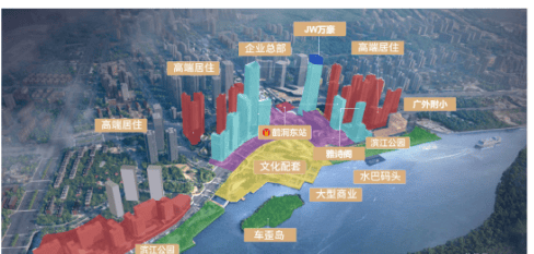 项目以拉德芳斯为蓝本,创建站城一体化 “TOD” 模式,联通城市、车、人和轨道系统,并规划了水上巴士,通达珠江两岸,为业主提供了多元化的出行方式。这种创新的交通模式,不仅提高了出行效率,还减少了对环境的污染,符合现代城市发展的理念。