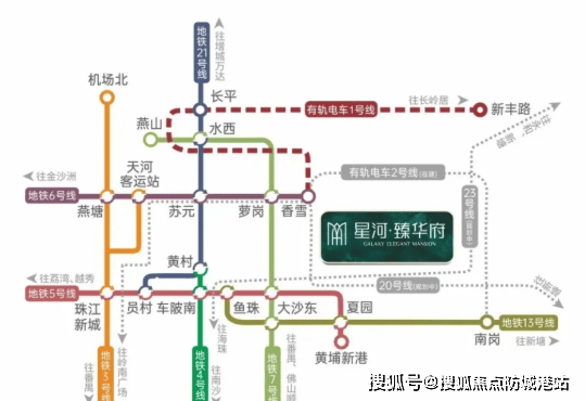 尽管当前距离地铁6号线香雪站约2公里,但项目真正的交通优势在于其前瞻性的轨道布局。地铁6号线东延段站点已规划落位于项目家门口,未来步行即可直达;同时,规划中的地铁20号线、23号线将在植树公园设站,距离项目仅约1公里。多重轨交加持,将彻底打通区域与天河、珠江新城、金融城等核心商圈的高效连接。
