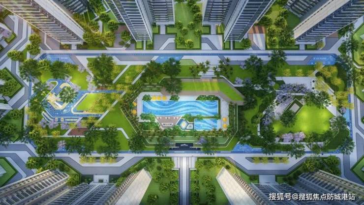 项目建筑采用公建化滨水美学设计,表层细节融入海洋元素,几何美学与精工细作彰显现代感;园林打造借鉴岭南水乡 “亲水而居” 的理念,结合 “开放、共享、多元” 的社区理念,将自然景观与人文空间无缝衔接。约 1.2 万方中央大花园、中轴双泳池等景观节点,既延续了东方园林 “移步换景” 的意境,又融入岭南植物与水景元素,让居者在科创社区中感受传统文化与现代生活的碰撞。