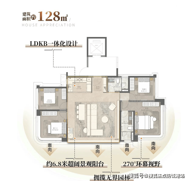 【能建·天誉府】以新规产品重塑江景大平层标准。主力户型133-228㎡,使用率约100%,突破传统得房率限制。建面约133㎡即可实现四房两卫,228㎡户型配备270°环幕全景舱、16米L型阳台及超28㎡行政主套,江景视野无界渗透。LDKB洄游方厅设计、11.5米超阔开间、0.36窗地比(远超行业均值0.25),最大化引入自然光与江景。虽部分功能区尺度因追求景观面有所压缩,但整体空间逻辑清晰、动线流畅,在新规时代下,项目以“珍藏级”产品力,重新定义南沙乃至整个湾区的江景豪宅新标杆。