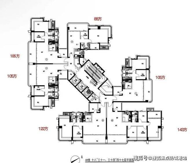 二期共规划 6 栋楼,41 - 47 层高,蝶形楼 + 围合式布局,比起一期,绿化面积更集中,楼间距更宽,住着更舒服,视野也不遮挡。除 1 栋 3 梯 5 户,其余 5 栋都是 3 梯 6 户。首推 D 座,47 层,3 梯 6 户,2026 年底收楼。有 6 个户型,88 平朝西北,2 个 105 平朝西南,122 平和 143 平朝东南,还有一个 105 平朝东北,所有户型层高都是 3.05 米。