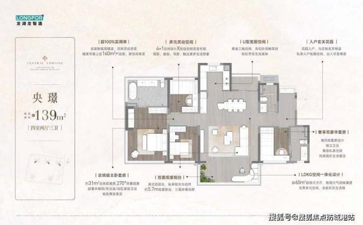 139㎡四房两厅三卫:双套房+中西厨,媲美别墅的居住体验。
