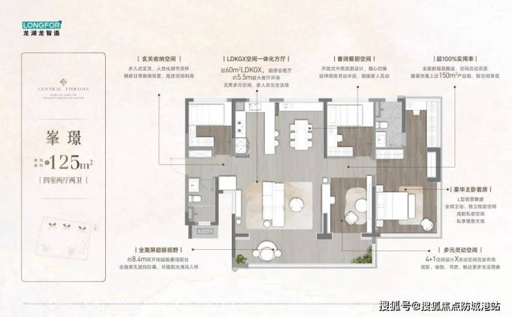 得房率:新规下最高达130%,95㎡户型实际使用面积超123㎡,性价比凸显。