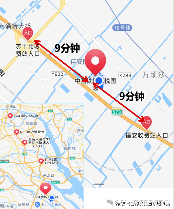 项目距离南沙枢纽(万顷沙站)约2公里,构筑15-30-60分钟湾区生活圈