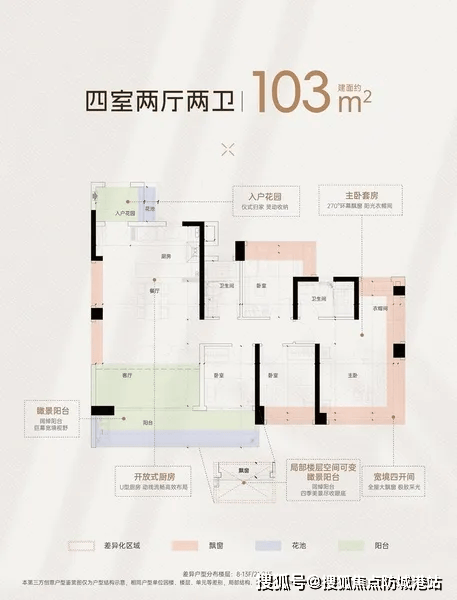 103㎡四房:LDKB一体化布局,270°瞰景阳台,实现餐厨客阳无缝互动;